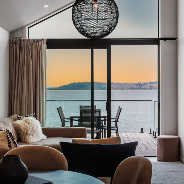 For larger families or groups, our Joined Units provide four bedrooms, two bathrooms, two kitchens, and sleeps up to 10 people. You can soak up a full lakefront experience with direct lake access, or simply enjoy the uninterrupted panoramic views of Lake Taupo. It's got everything you need for an unforgettable, luxury group getaway.
