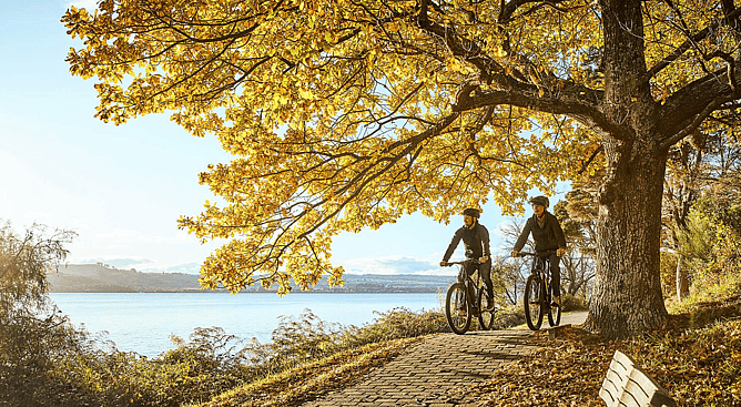 There is no better way to see the autumn colors than a stroll or bike ride along the Lion’s Walk (Great Lake Pathway). Starting right near Roam Taupo, this flat, paved trail hugs the lakefront. In autumn, the deciduous trees lining the path turn brilliant shades of yellow and red, reflecting perfectly in the crystal-clear water. It’s the ideal time for photos without the summer haze.