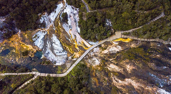 Often described as "The Hidden Valley," Orakei Korako is located about 25 minutes north of Taupo and is accessible only by a short ferry trip across Lake Ohakuri.